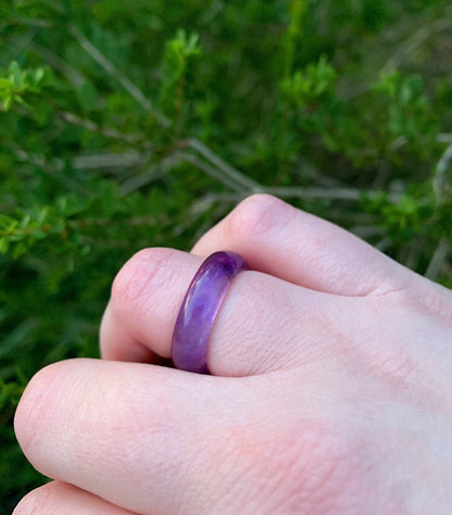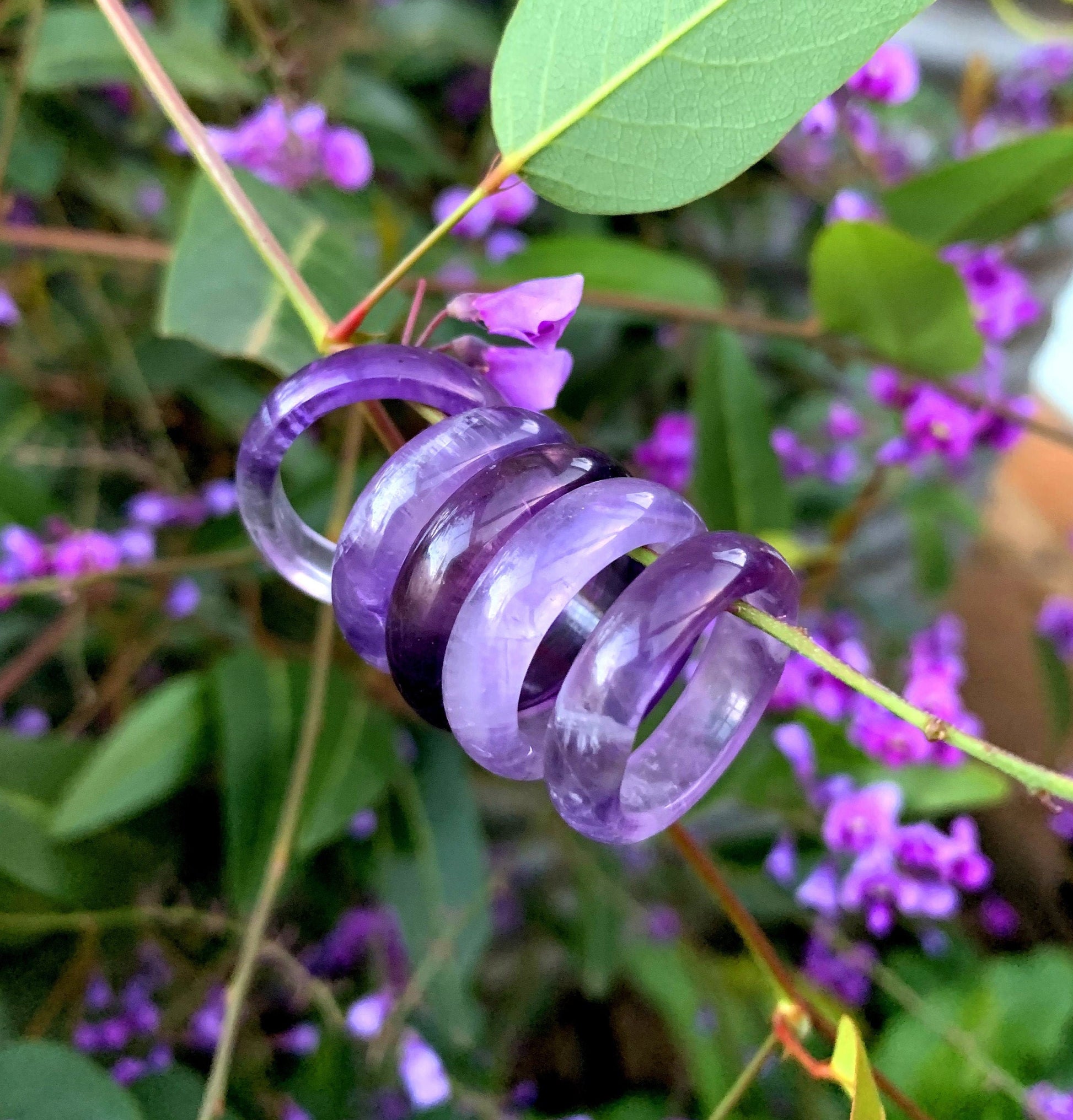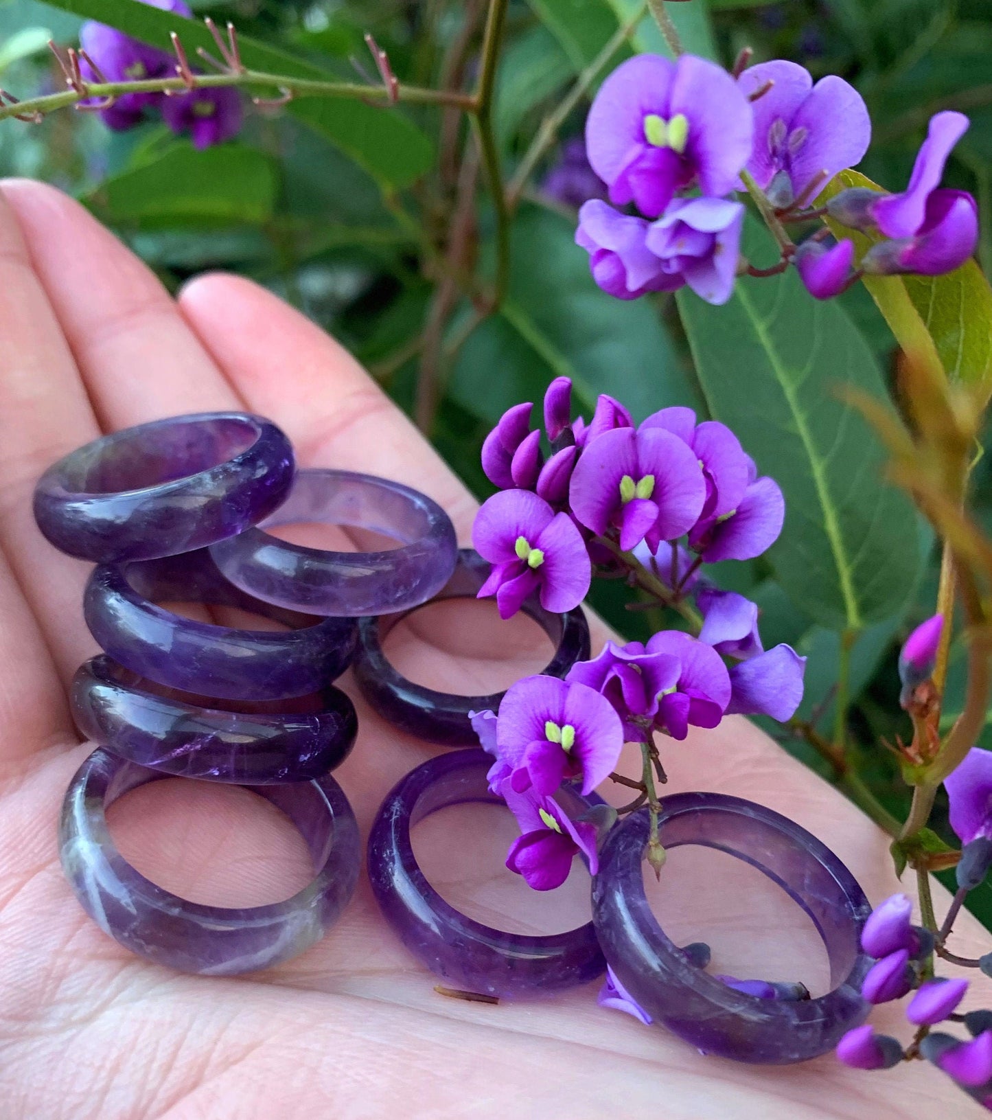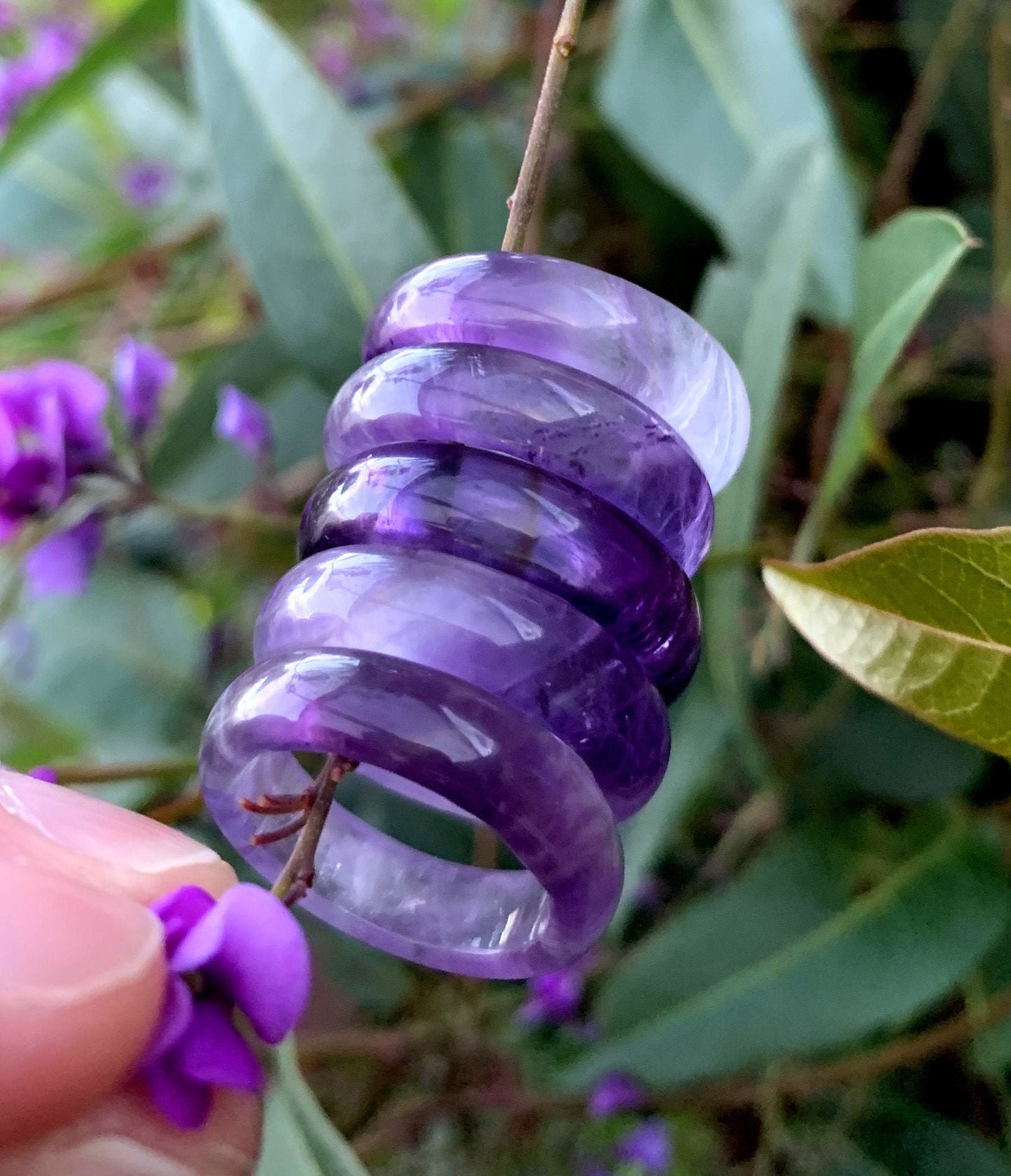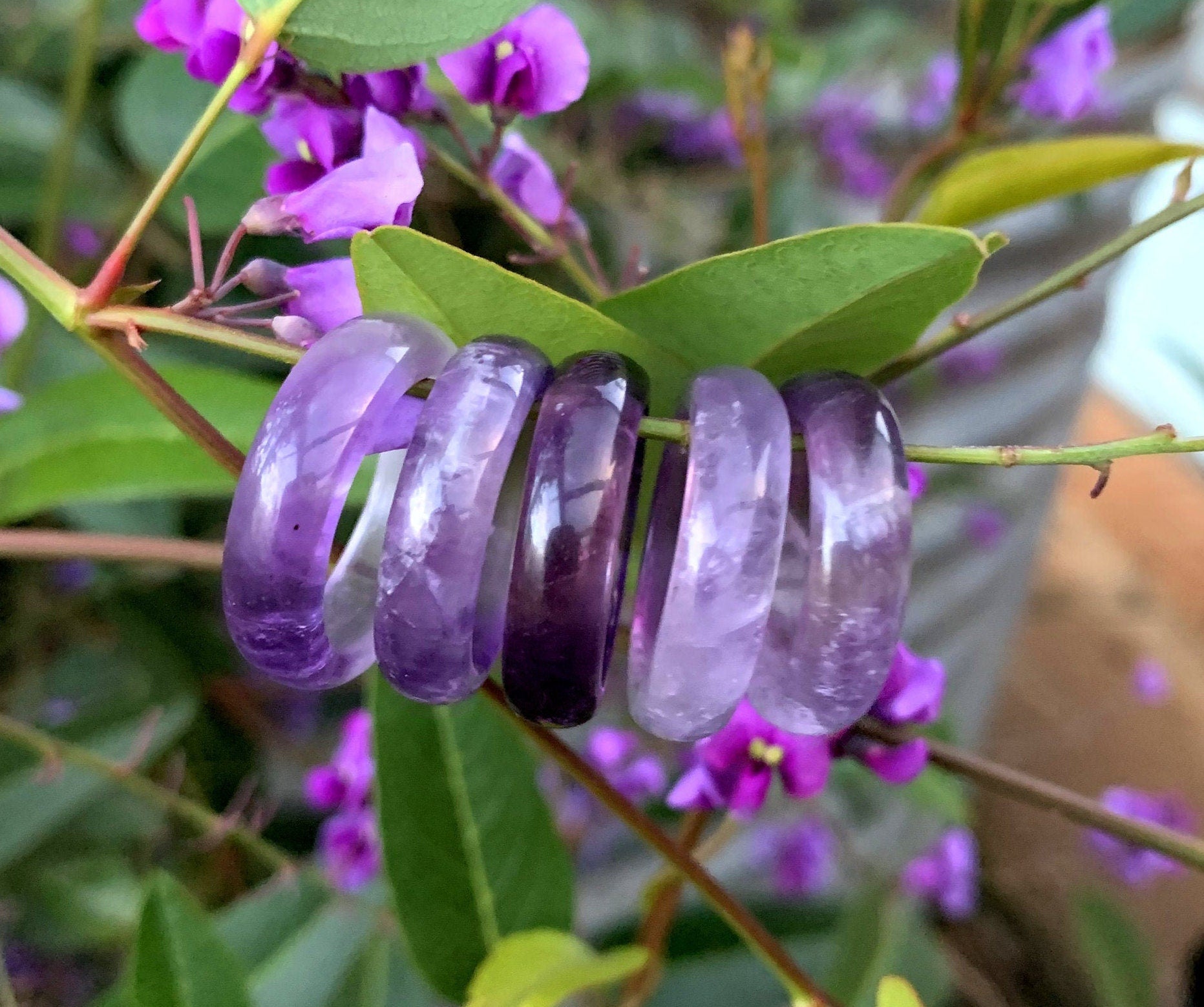 Diese atemberaubenden Ringe sind aus echtem massivem Amethyst gefertigt, daher hat jeder Ring eine etwas andere Farbe und ein etwas anderes Muster.