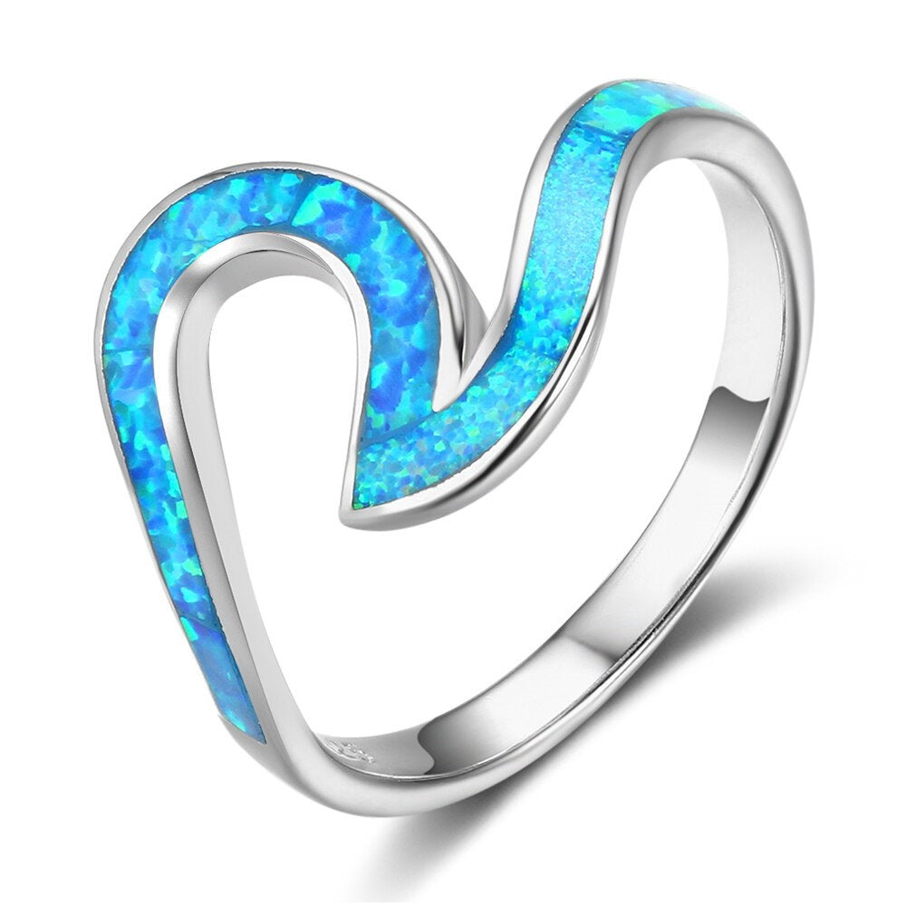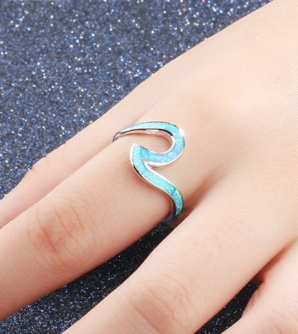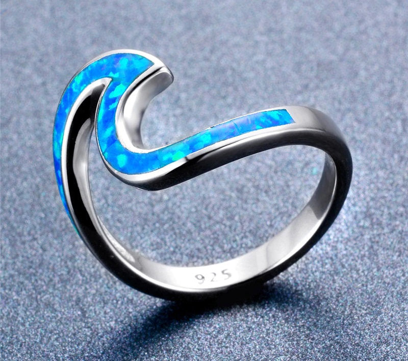 Blauer Feueropal-Wellenring aus 925er-Sterlingsilber