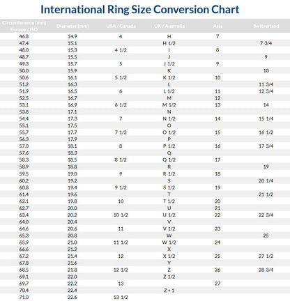 Um sicherzustellen, dass Sie die richtige Größe bestellen, können Sie entweder einen früheren Ring verwenden, einen Juwelier aufsuchen oder einen einfachen Ringgrößenmesser verwenden. Wir empfehlen Ihnen, Ihren Finger vor der Bestellung von einem Juwelier vermessen zu lassen, da dies der genaueste Weg ist, Ihre Ringgröße zu ermitteln. Viele Juweliere bieten ihre Ringgrößenbestimmung tatsächlich kostenlos an. Um die genaueste Größe zu erhalten, empfehlen wir den Besuch bei mindestens zwei verschiedenen Juwelieren.
