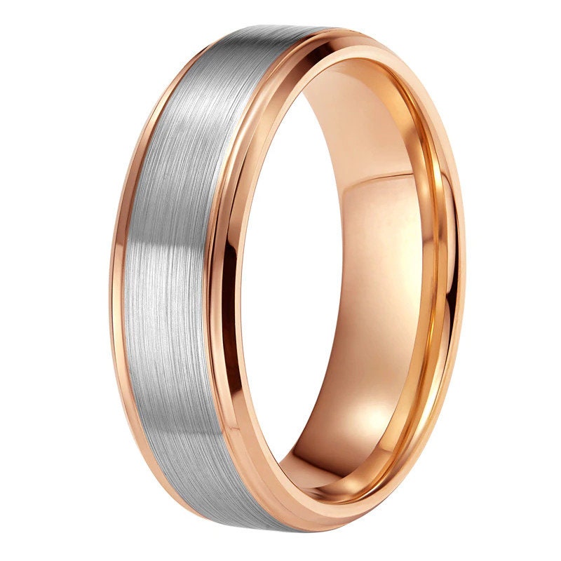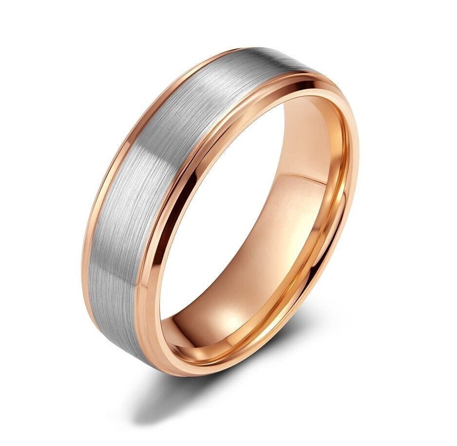Zweifarbiger Ehering aus Roségold und gebürstetem Silber