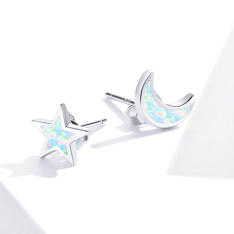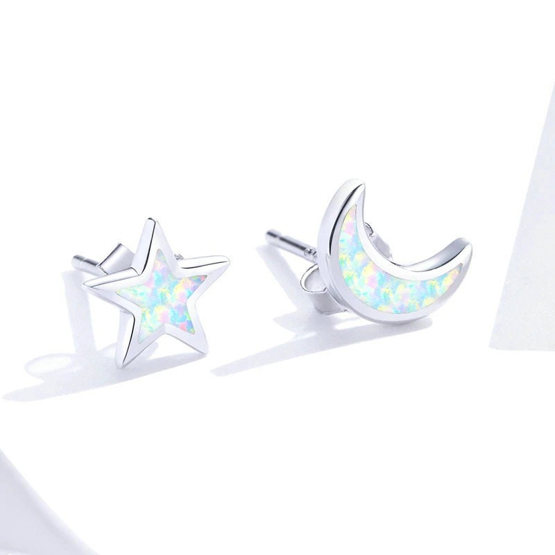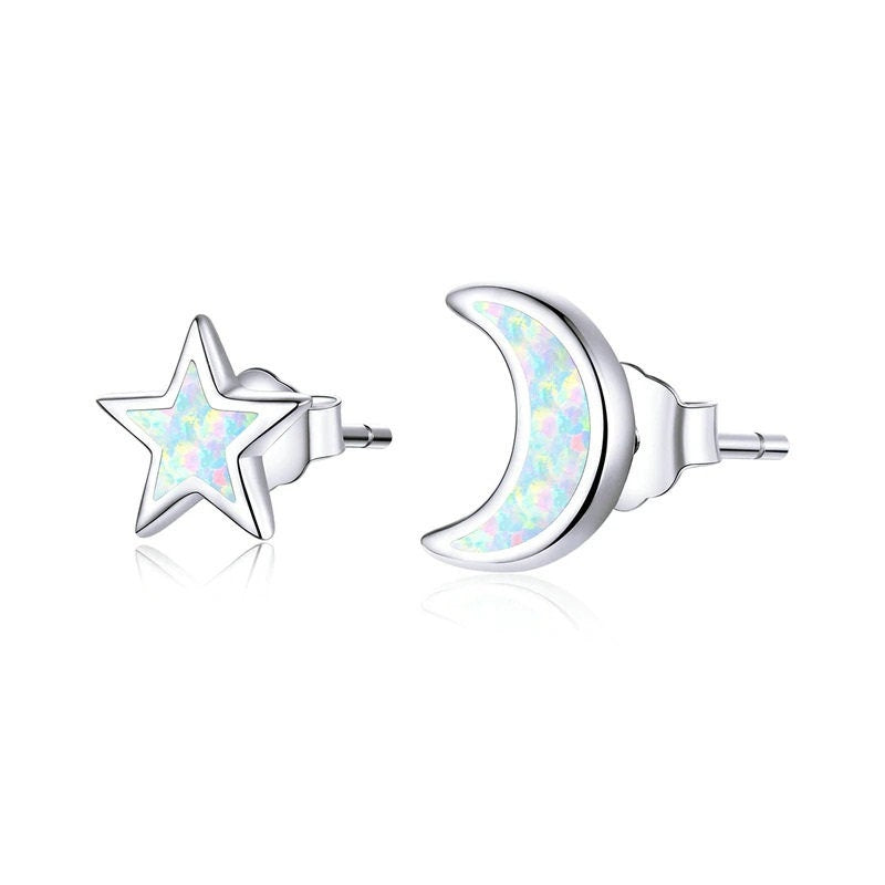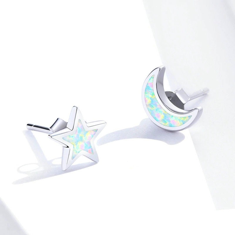 Feueropal-Stern- und Mond-Ohrstecker aus 925er Sterlingsilber