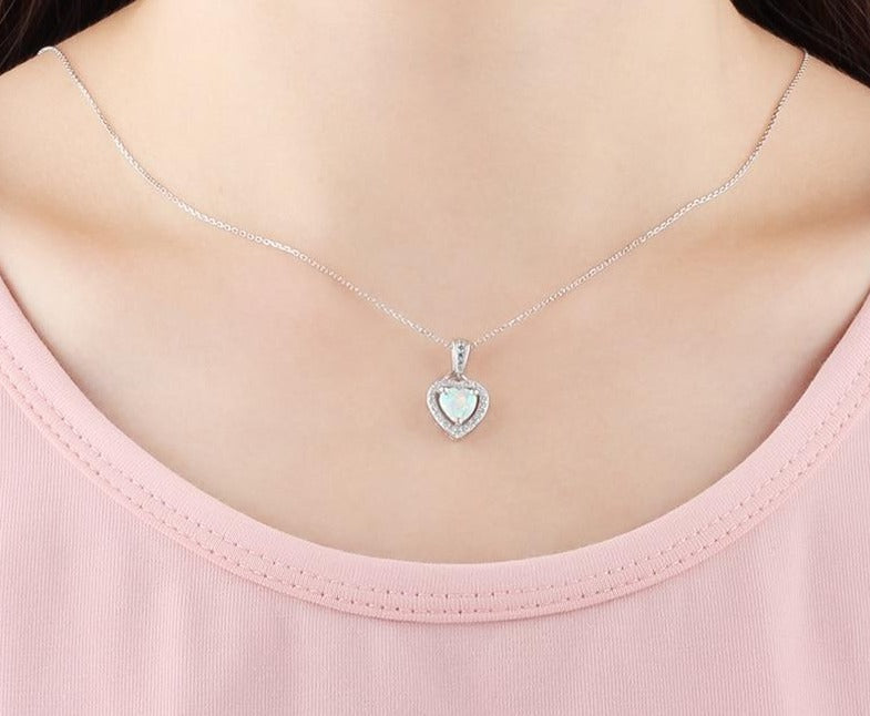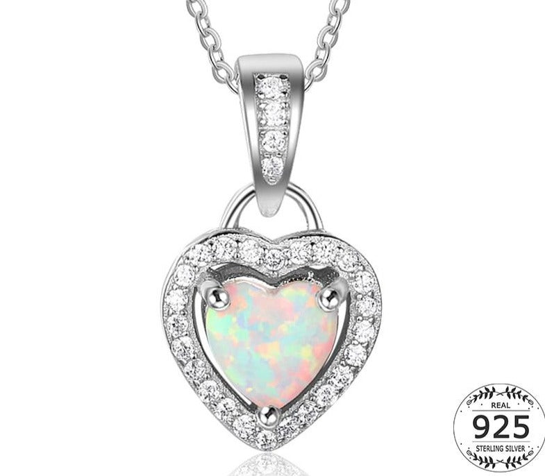 Collier pendentif coeur en argent Sterling 925 pour femmes, zircone CZ pavé opale, chaînes à maillons