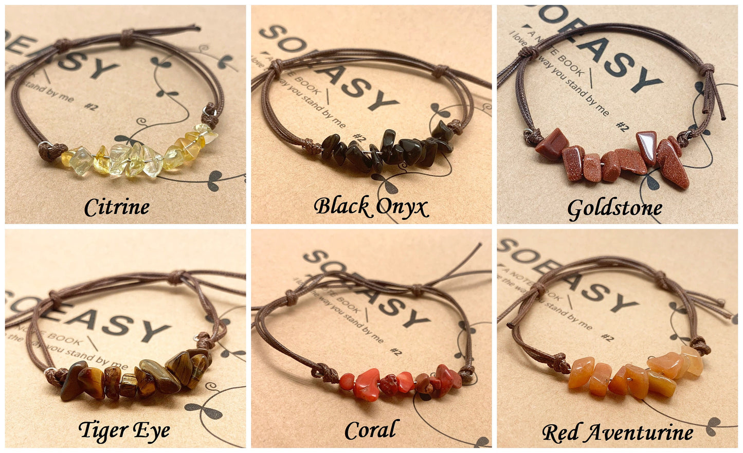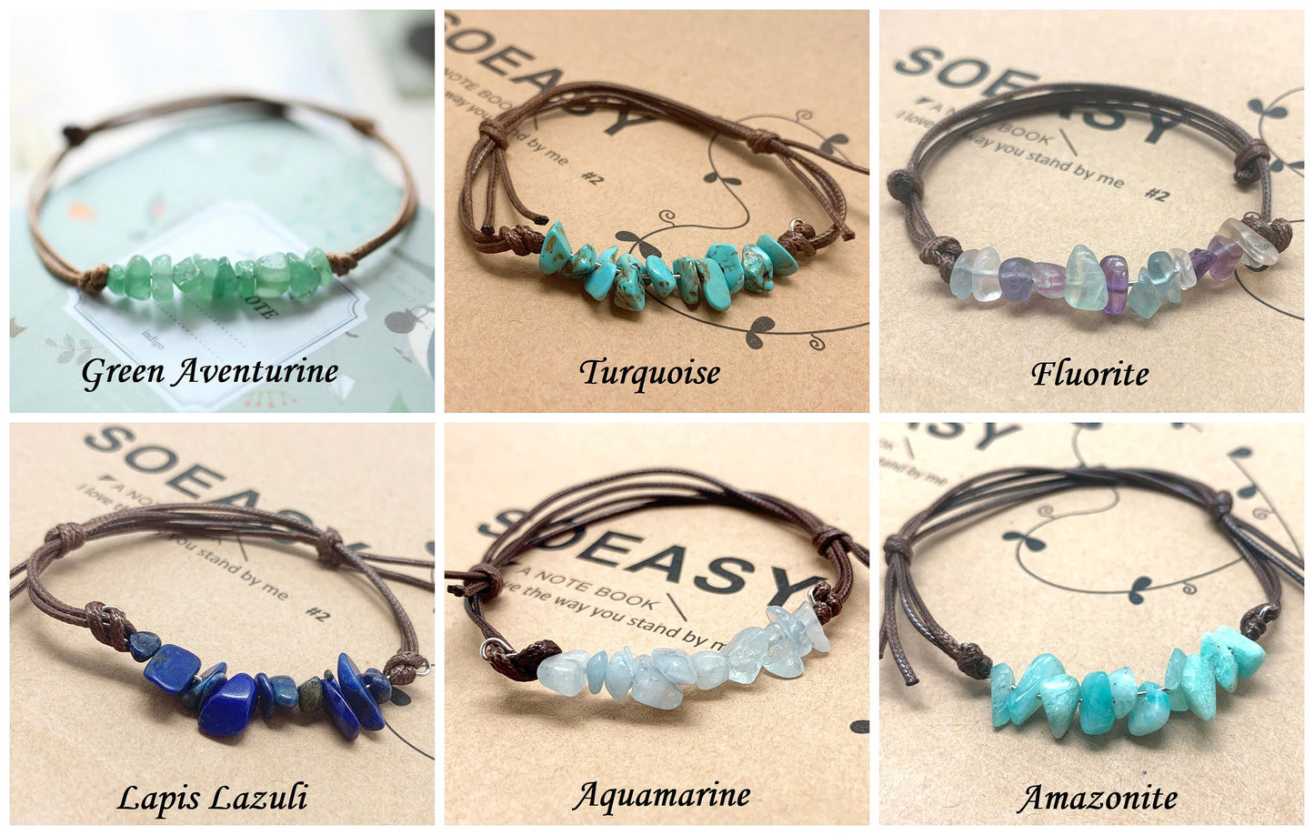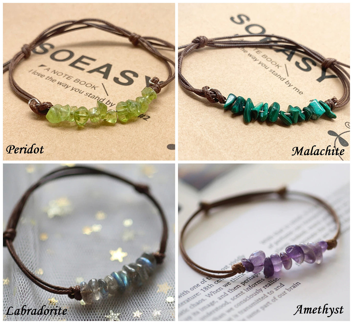 Ces jolis bracelets de style Boho sont fabriqués à la main à partir de copeaux de pierres précieuses naturelles et dégagent cette ambiance bohème parfaite !