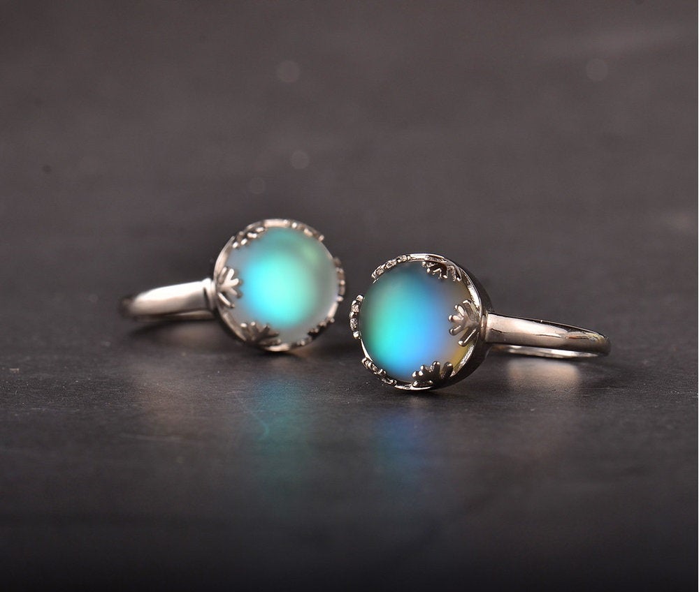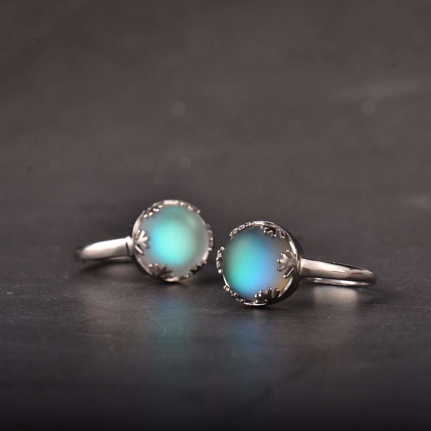 Belle bague en argent sterling fabriquée avec Aurora Glass, qui présente de superbes éclats de couleurs ressemblant aux aurores boréales dans le ciel nocturne !