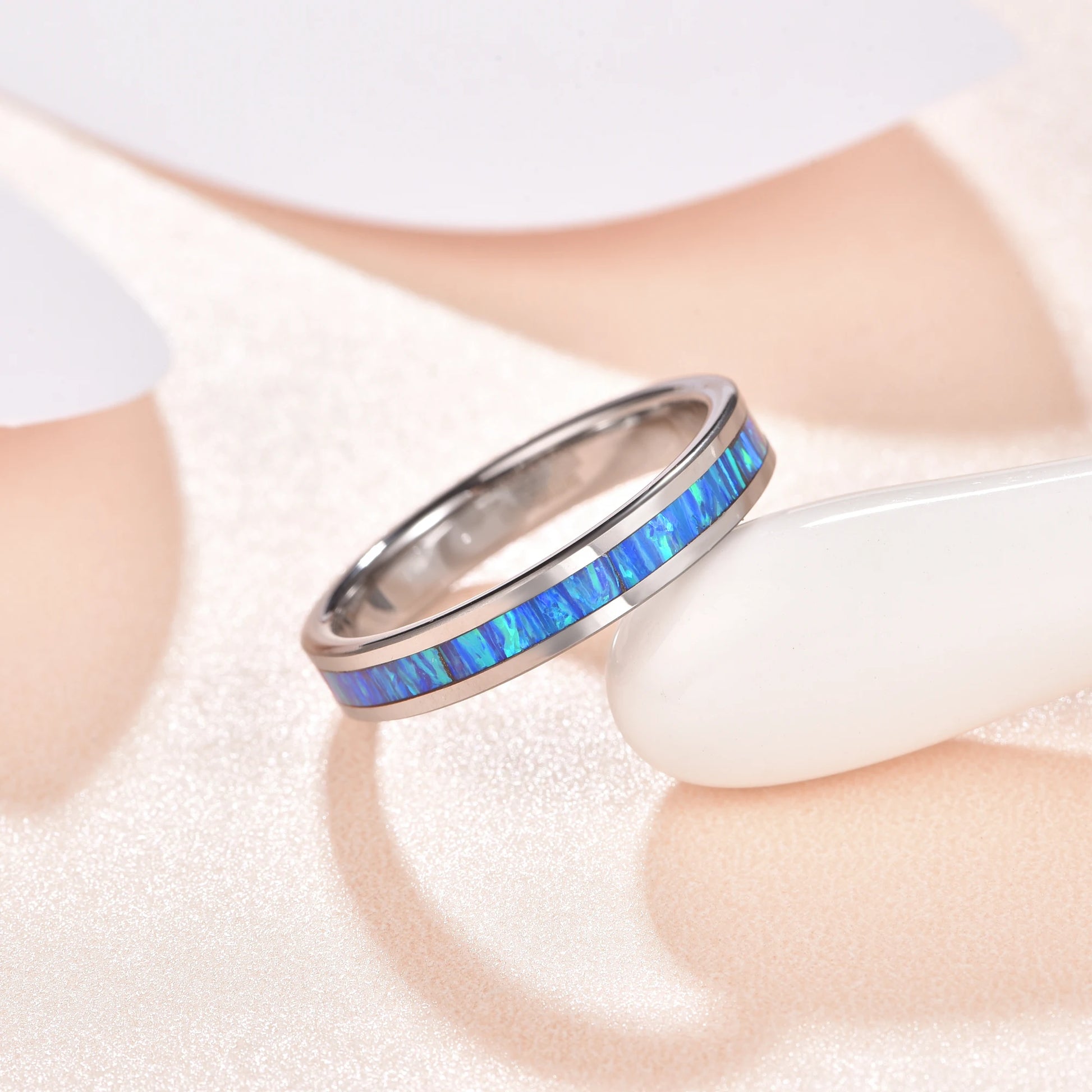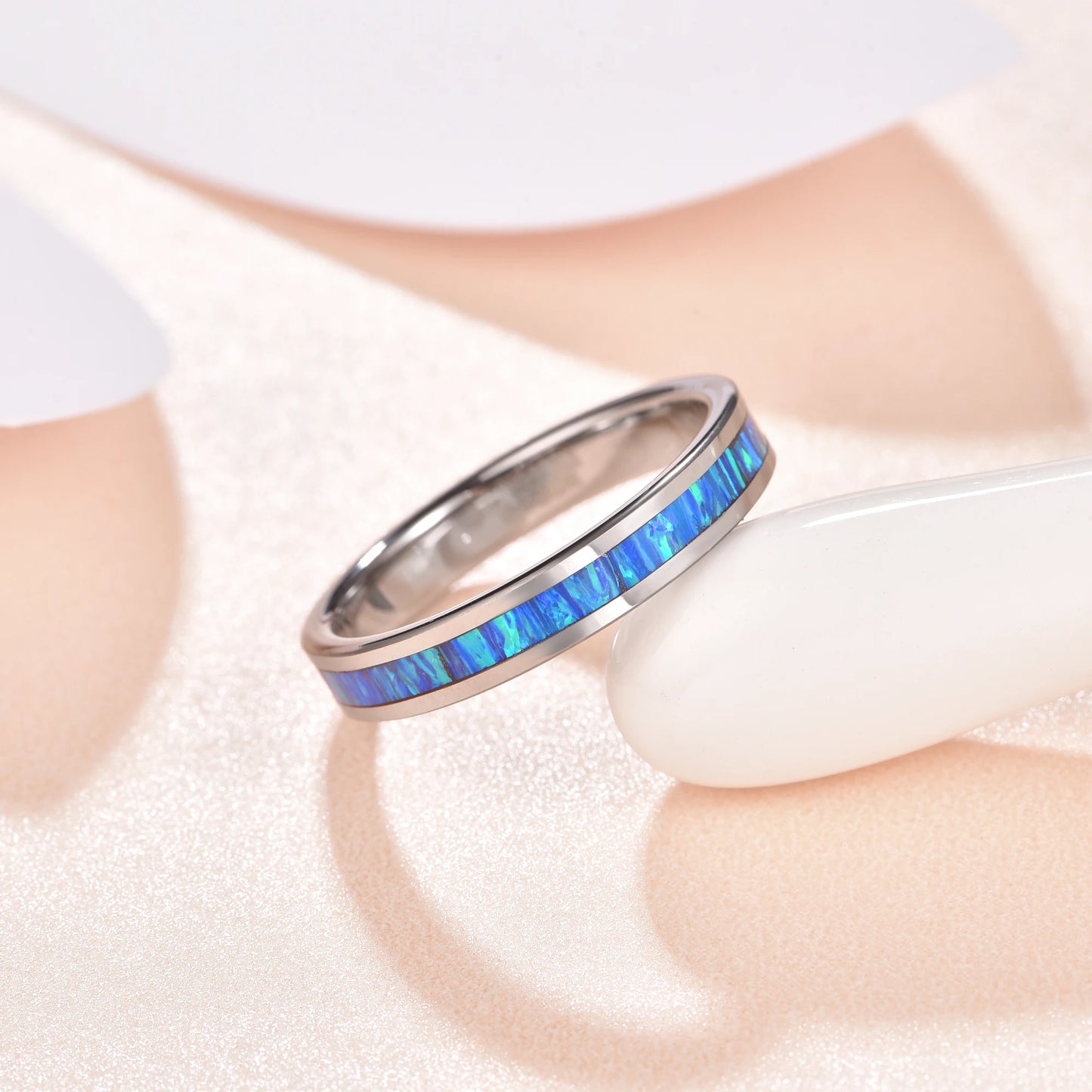 Blue opal engagement rings are often chosen for their gorgeous colors—but few offer the strength to match their beauty. This band is crafted from premium Tungsten, a material renowned for its unmatched durability.
