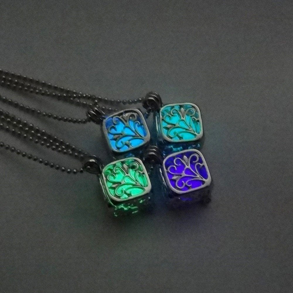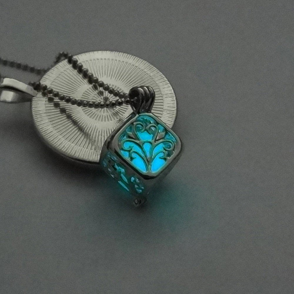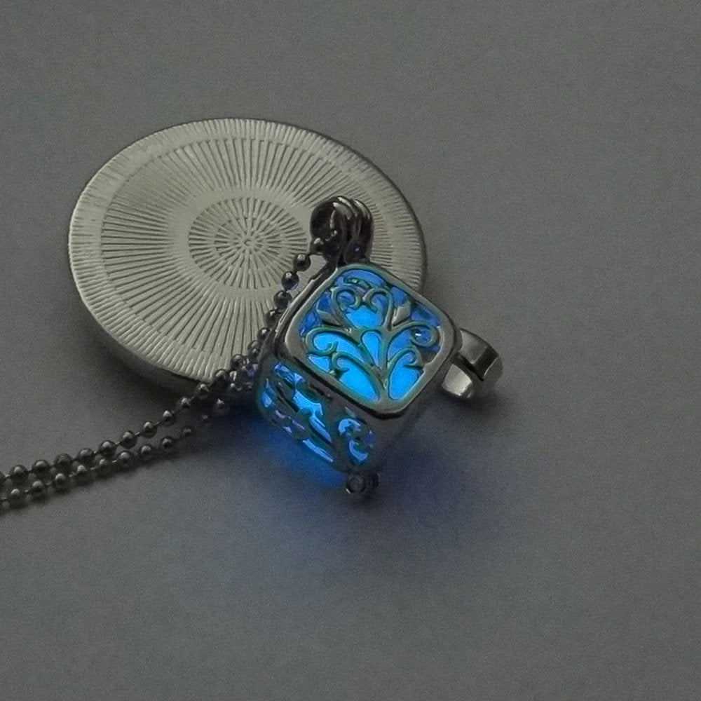The pearl inside this pendant is made from a special material that glows in the dark. It is white under normal lighting, but glows under the cover of darkness. You can choose from a selection of different glow colors when placing your order. To charge your pendant, place it under a bright light. The brighter the light you use to charge your pendant, the more powerful the glow will be, and the longer you charge the pendant, the longer the glow will last. We recommend charging your pendant under bright sunlight for the strongest and longest lasting glow.