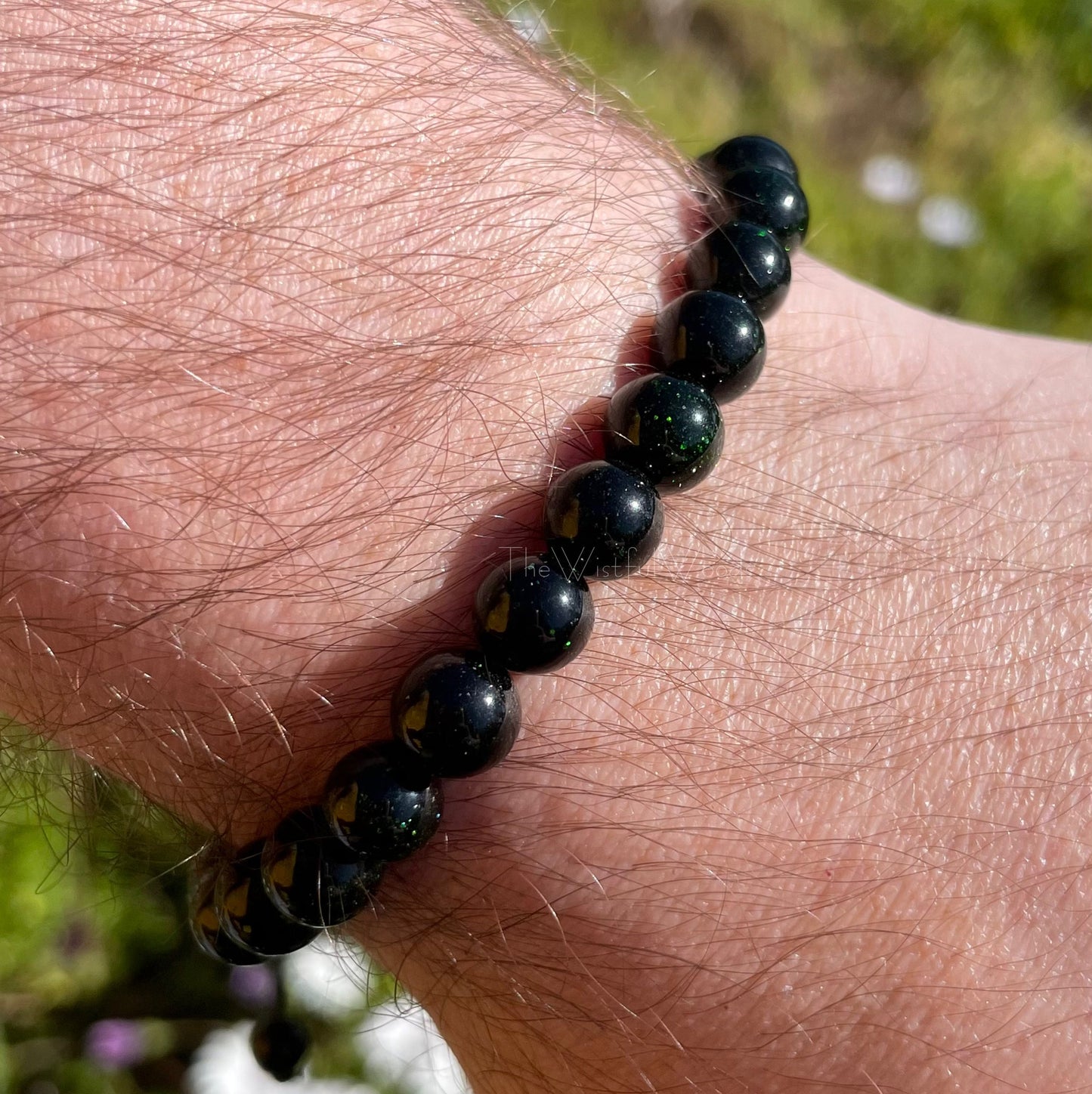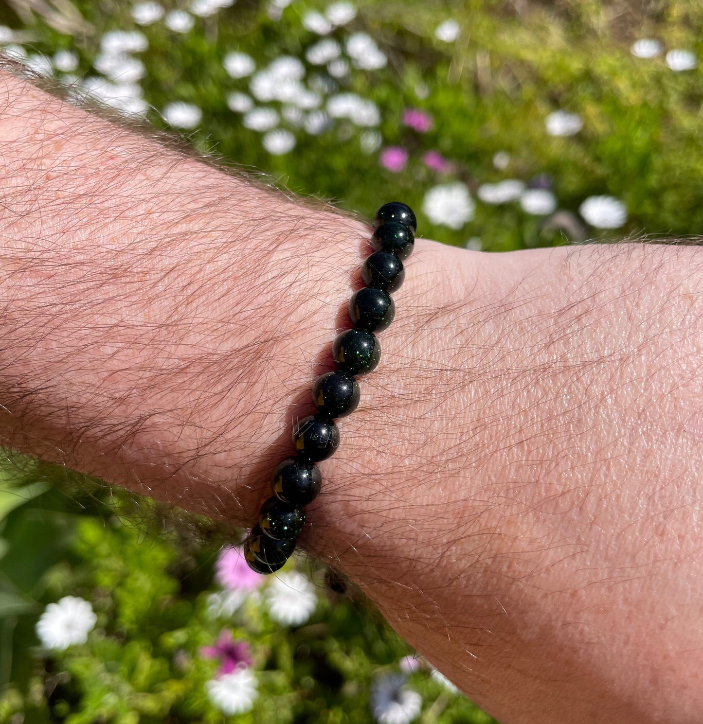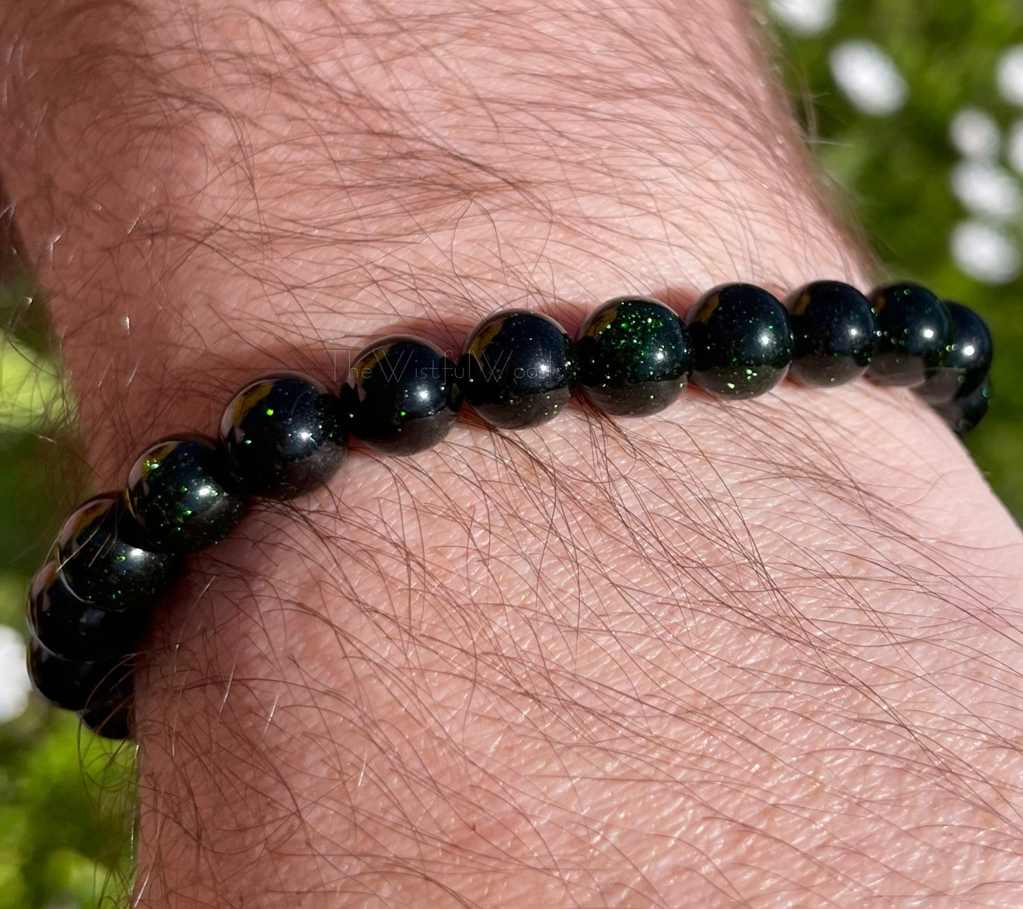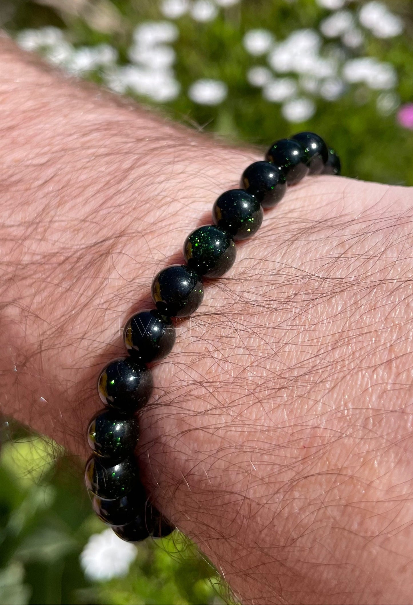 Made with 8mm green goldstone beads.