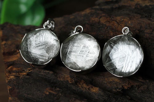 Our meteorite jewelry is made with genuine Gibeon Meteorite, therefore while each pendant will look very similar, no two pendants will look exactly the same as the natural patterns and lines on the surface of the meteorite will be slightly different in each pendant.