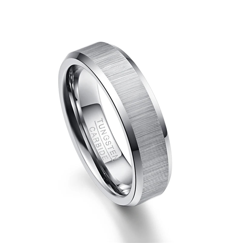 Silver Wedding Band Mens | Rings for Men Silver | 6mm Brushed Tungsten